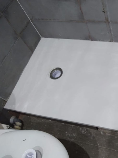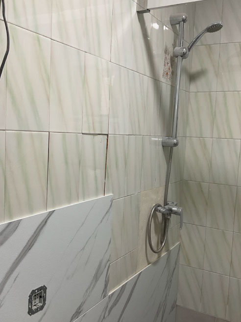Reforma integral de baño en un departamento. Cambio e instalación de un nuevo inodoro, canilla, ducha y espejo. Se realizó un revestimiento a las paredes del baño. Arriba de los azulejos antiguos se colocó pladur, una placa laminada fabricadas con yeso, que se asemejan a los azulejos y son impermeables. El pladur se coloca sobre el azulejo antiguo, de esta manera la reforma no genera ruidos molestos ni polvo. Es una reforma amigable para el propietario y sus vecinos.