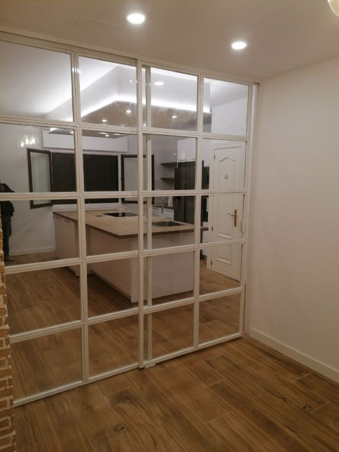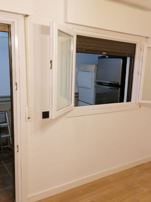 Reforma de cocina americana con comedor y lacado de puertas y ventanas.